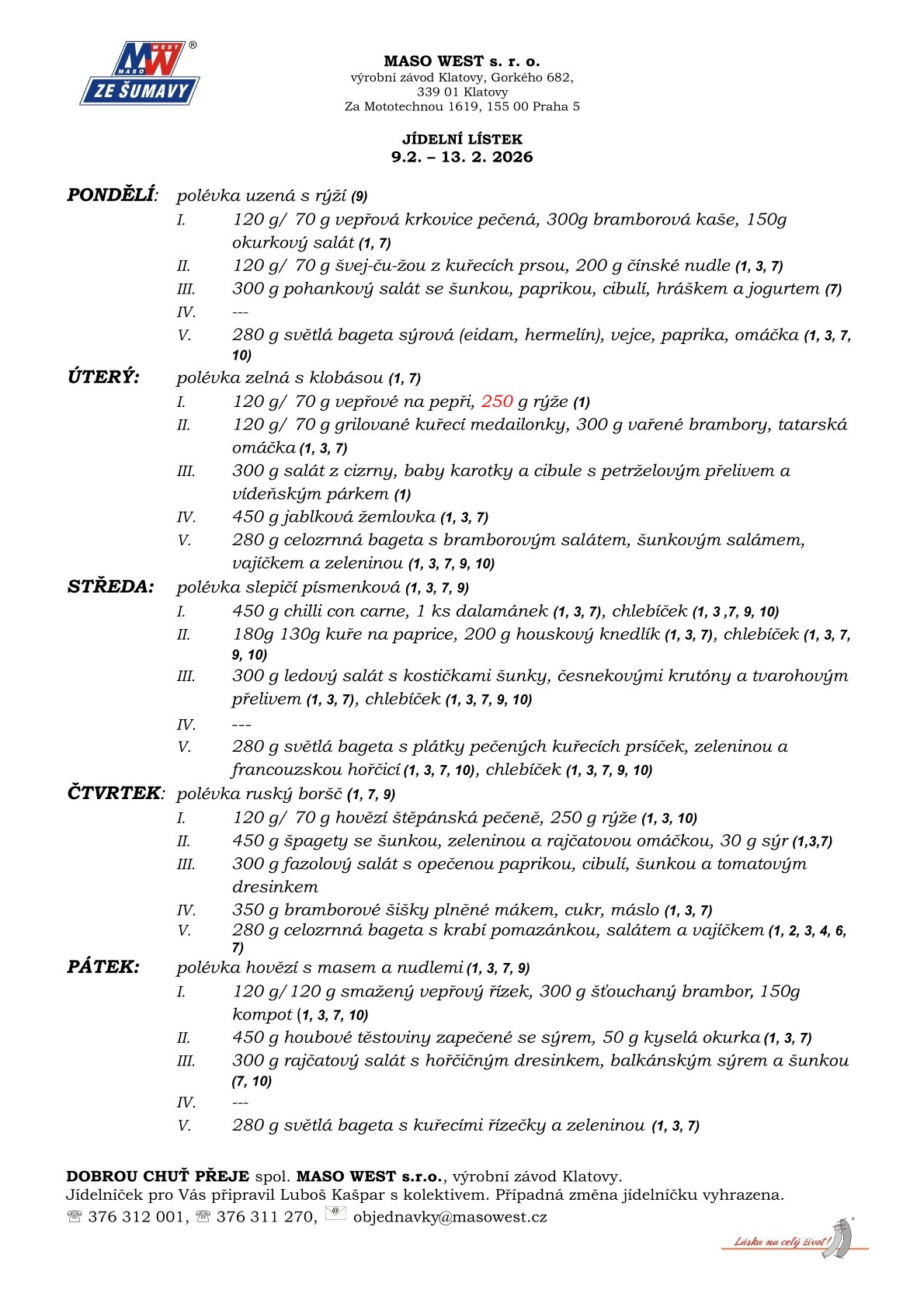 MASO WEST s. r. o. je výrobcem a dodavatelem čerstvě opracovaného masa ze Šumavy, uzenářských výrobků a specialit a lahůdkářských výrobků studené a teplé kuchyně vč. zajištění distribuce obědů.